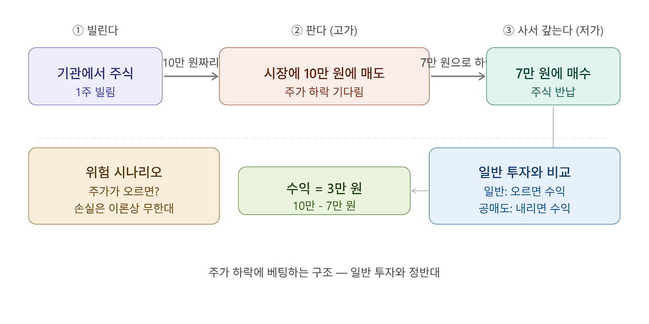 1. 핵심 원리: 빌려서 팔고, 나중에 사서 갚는다