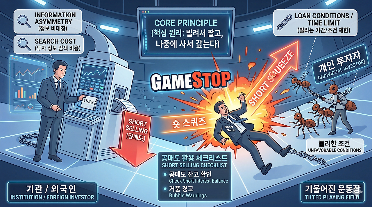 주식 뉴스에 매일 나오는 공매도, 도대체 왜 개인 투자자에게만 불리할까요? 공매도의 순기능과 부작용은 물론, '기울어진 운동장'이라 불리는 이유를 정리했습니다. 전설적인 게임스톱 사건으로 배우는 숏 스퀴즈의 실체까지 공개합니다.