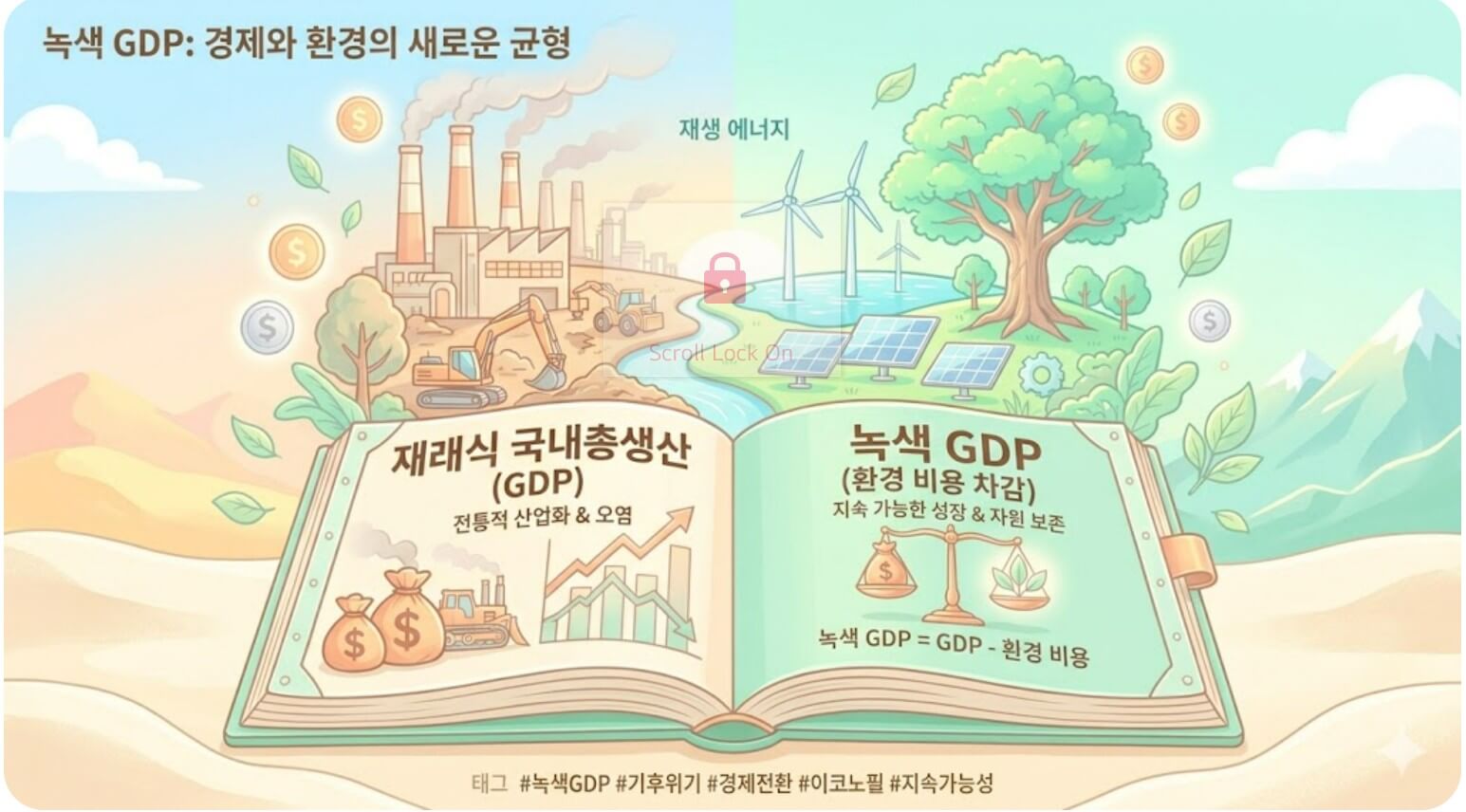 우리가 매일 뉴스에서 접하는 'GDP'는 한 나라의 경제 규모를 보여주는 대표적인 지표예요. 숫자가 오르면 "경제가 성장했다"고 기뻐하고, 내려가면 걱정하죠. 그런데 문제가 있어요. GDP는 공장이 강물을 오염시켜도, 숲을 싹 밀어버려도, 그냥 '성장'으로 기록해버린다는 거예요. 이걸 보완하기 위해 등장한 개념이 바로 녹색 GDP(Green GDP) 입니다.