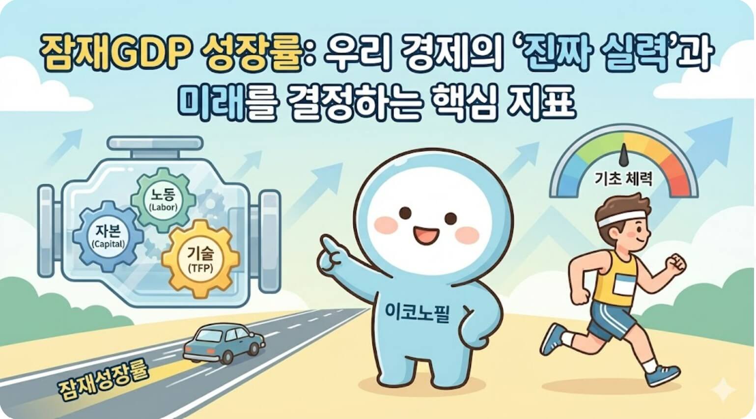 마라톤 선수가 자신의 페이스대로 뛰면 완주할 수 있지만, 초반에 너무 무리하면 금방 지쳐 쓰러지는 것과 같습니다. 잠재성장률은 바로 그 '지치지 않고 꾸준히 뛸 수 있는 페이스'를 말하며, 이는 곧 국가 경제의 기초 체력입니다.